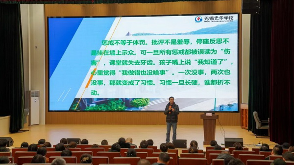 高中德育主任杜文学以“聚家校之光,启未来之华”为主题,围绕“合格家长的培育路径”“家校协同的实践方向”等内容作专题演讲。