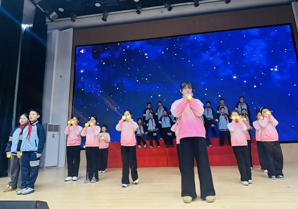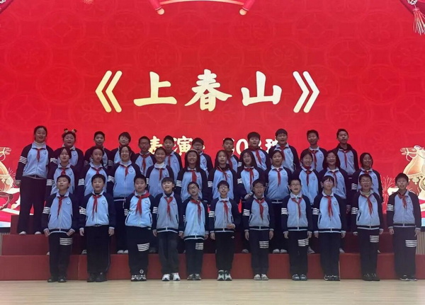 手势舞融合唱《夜空中最亮的星》,温柔眼眸藏坚定,愿逐光而行向新程;古诗新唱《上春山》,清歌一曲唤春醒,生机盎然赴新景;全英文剧《皇帝的新装》,台词流利演技精,幽默桥段掌声鸣;钢琴独奏《夜莺在歌唱》,指尖流泉润心膛,悦耳旋律盼安康;中国舞《长安啊》,翩跹水袖舞盛唐,传承文脉续华章;合唱《如愿》寄新望,全场轻和情意长,家校同心共启航!